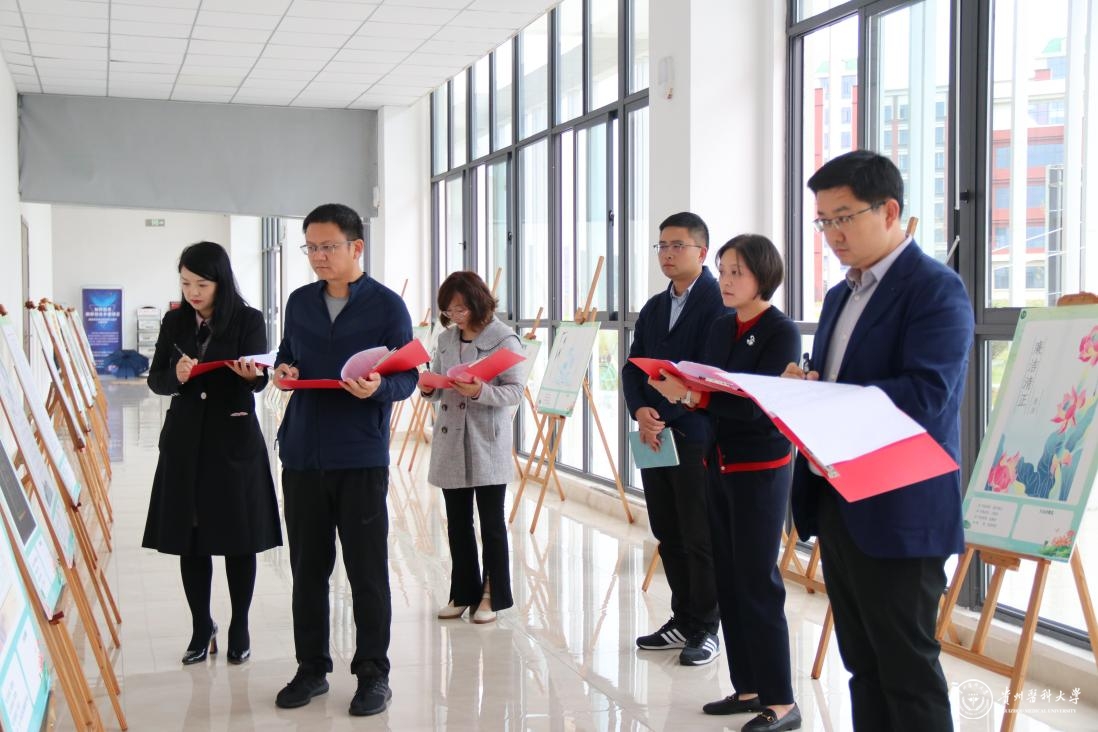 党委学生工作部(学生处、武装部)部(处)长王韬、校团委书记王妤煜、贵州省纪委省监委派驻校纪检监察组综合室副主任李丹、党委组织部副部长蔡炼、党委宣传部网络信息管理科科长陈祥贵对本次征集作品进行评审。经评委现场评选,综合考虑作品的主题内涵性、作品原创性以及艺术观赏性等要素,评选出35件获奖作品。