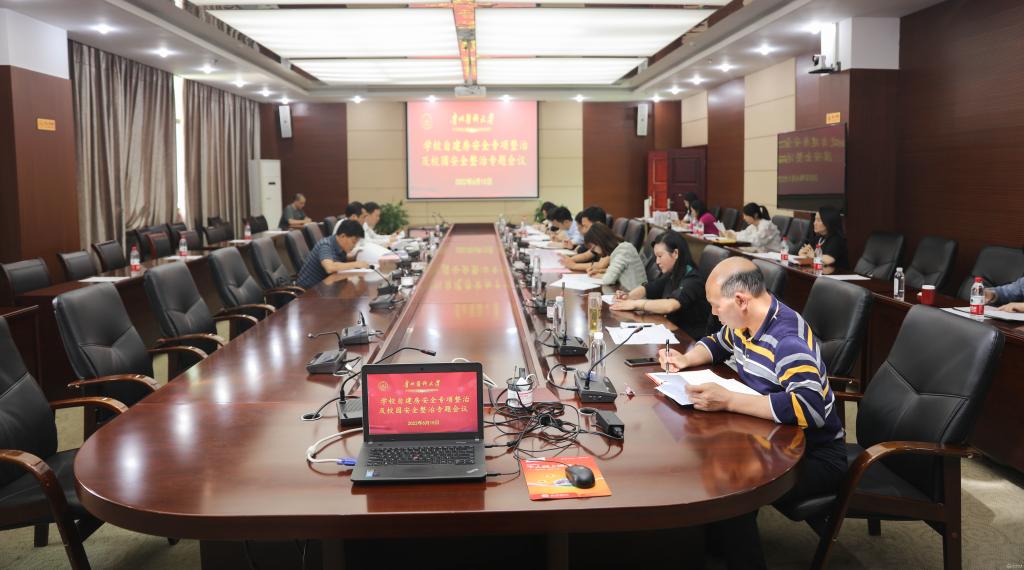 6月15日,党委副书记、校长罗鹏在学校北京路校区行政楼六楼连廊会议室主持召开自建房安全专项整治及校园安全整治工作专题会。党委副书记汤磊、副校长罗俊出席,相关部门主要负责人及工作人员参加。