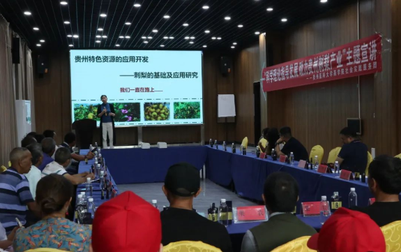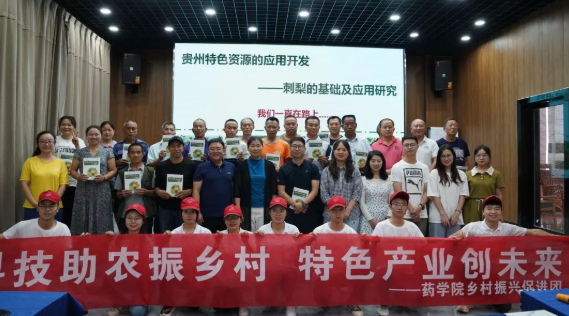 药学院一直以来致力于服务基层,服务地方,积极鼓励动员全体师生参与到社会服务中,特别是投身乡村振兴和助力健康中国实践活动中。以高秀丽课题组为代表,结合地方经济产业发展,对刺梨的营养成分和药用价值进行了深入的研究,同时积极与省内刺梨公司合作交流,探索“产学研一体”的刺梨产业融合发展模式,推动贵州刺梨产业公共品牌建设,推动全省“黔货出山”,助力乡村振兴。