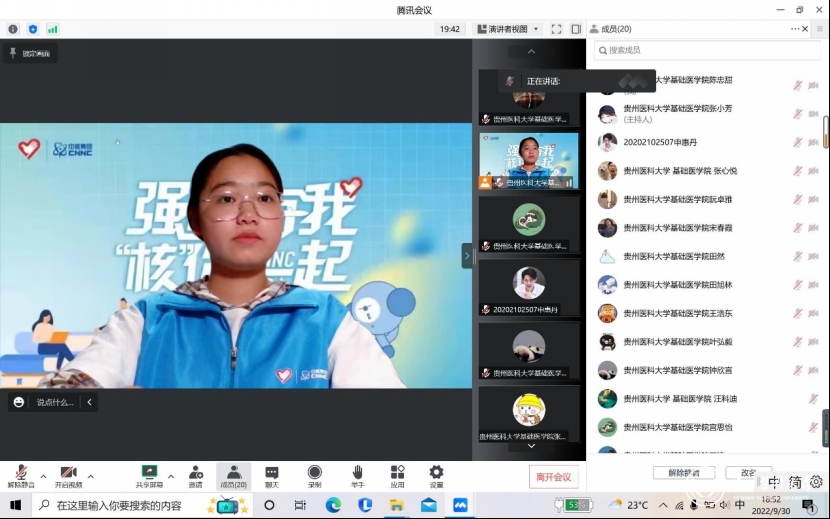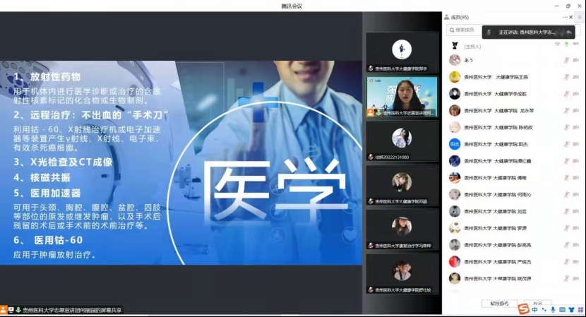 截至10月5日,太阳成集团tyc33455cc官网团委“强国有我,核你一起”和“夏日青鸽”大学生志愿宣讲团的12名宣讲团成员面向基础医学院、护理学院等9个学院进行“核”相关知识的宣讲,此次宣讲覆盖临床医学、护理学、康复治疗学、口腔医学等多个专业3个年级1475人。