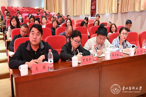 省委第十七巡回指导组副组长、黔西南州政协副主席、党组成员李如晴,省委第十七巡回指导组成员、黔西南州人大监察和司法委员会副主任委员马强,贵州现代物流产业集团有限责任公司党群工作部副部长、团委书记罗玉珍,安龙县工业和科学技术局四级主任科员韦学塔,瓮安县退役军人事务局一级科员左杨,学校及天产室党政领导出席,校党委副书记刘文主持。学校、天产室副处级以上干部,省纪委省监委派驻学校纪检监察组副处级以上干部,各附属医院副处级以上干部,附属白云医院、附属乌当医院党政主要负责人,主题教育领导小组全体成员参加。