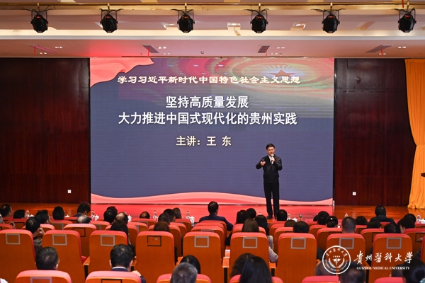 王东教授以《学习习近平新时代中国特色社会主义思想 坚持高质量发展 大力推进中国式现代化的贵州实践》为题,从“国际经济形势分析、中央经济政策分析、如何结合地方实际推动高质量发展”三个方面作辅导报告。王东教授从新颖的角度,以生动的讲授,结合贵州近年来的发展实际,深刻阐明推动高质量发展的重大意义、丰富内涵和实践要求,对太阳成党员干部深入学习领会新时代党的创新理论,提供了重要参考和借鉴。