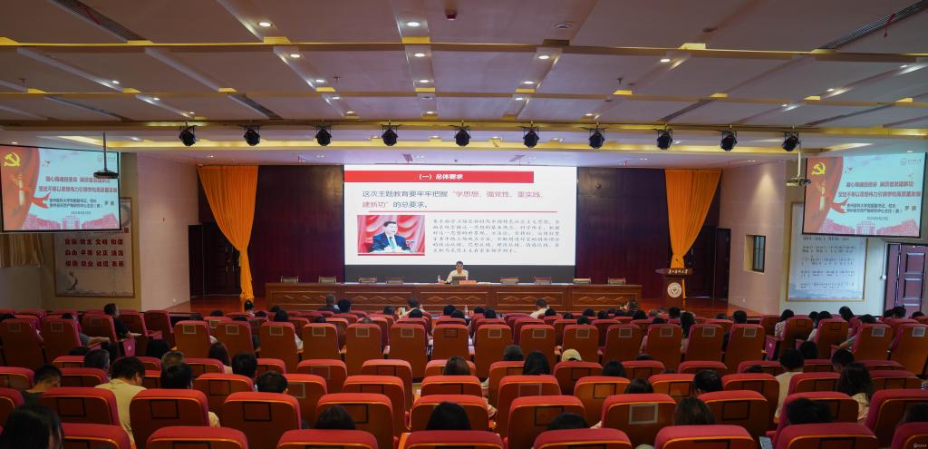 6月29日,校党委副书记、校长,贵州省天然产物研究中心主任罗鹏以“凝心铸魂担使命 踔厉奋发建新功 坚定不移以思想伟力引领学校高质量发展”为贵州省天然产物研究中心及分管联系单位班子成员、党员代表、师生代表作学习贯彻习近平新时代中国特色社会主义思想主题教育专题党课。省委主题教育第十七巡回指导组到会指导。