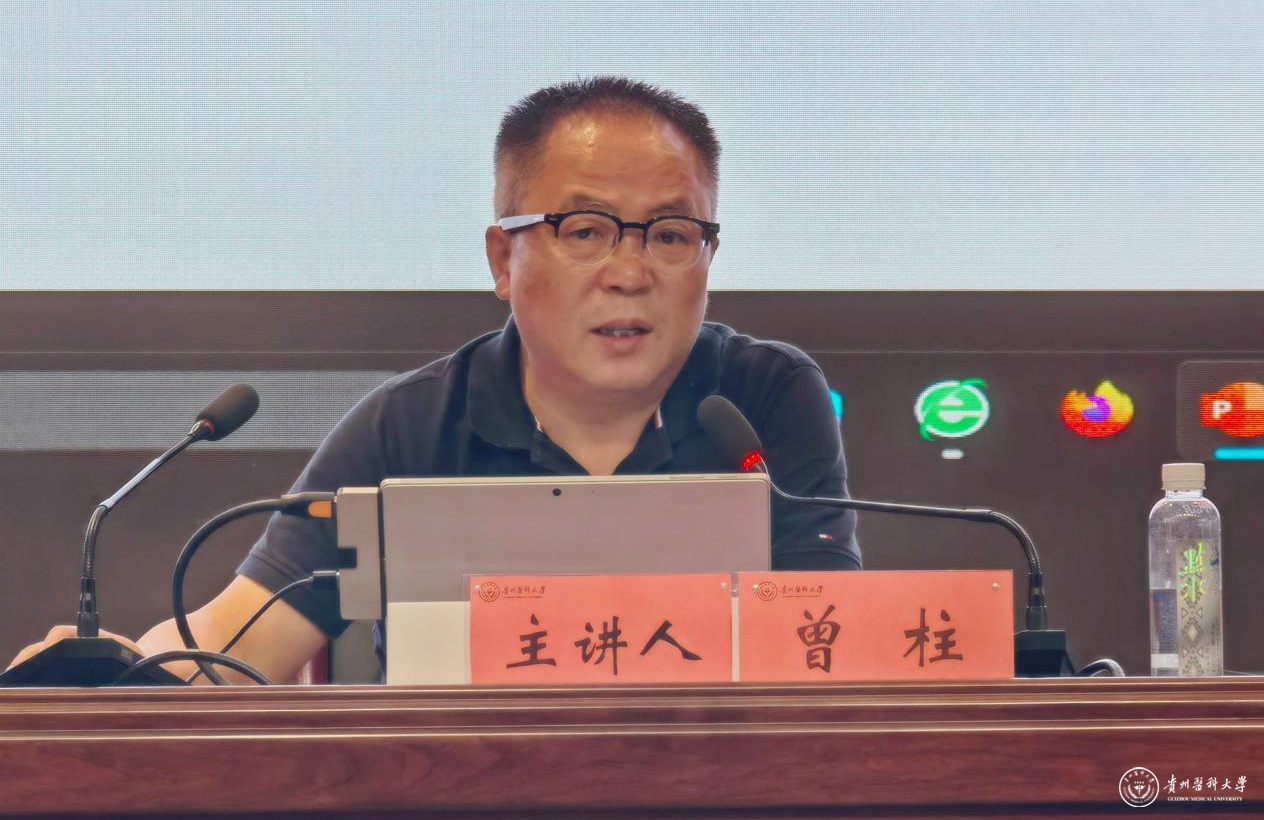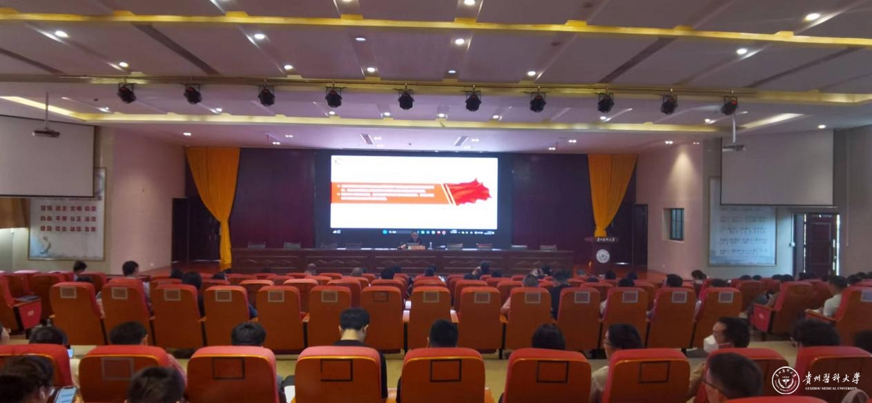 6月29日,校党委委员、副校长曾柱以“以学铸魂以学增智以学正风以学促干”为主题,为基础医学院、生物与工程学院(健康医药现代产业学院)、大健康学院、分子生物学重点实验室、组织工程与干细胞实验中心、转化医学研究中心、贵州省常见慢性疾病研究重点实验室,运动与健康学院、科学技术处、科技创新与产业发展处科学技术处、国际交流合作处、党委研究生工作部、研究生院、医学科学研究所的党员干部、师生员工作主题教育专题党课。各部门副科级以上干部、各支部书记,师生党员代表参加会议。
