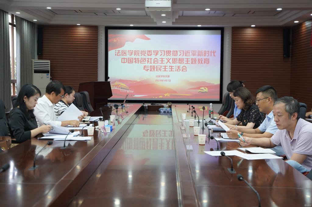 9月7日,法医学院党委学习贯彻习近平新时代中国特色社会主义思想主题教育专题民主生活会在北京路校区法医学院二楼会议室召开。校党委副书记、校长罗鹏出席,学校第十督导组王妤煜、罗梦晗到会指导。会议由学院党委书记黄江主持,法医学院/法医司法鉴定中心党委班子成员、副科级以上干部、教师代表、鉴定人代表参加。