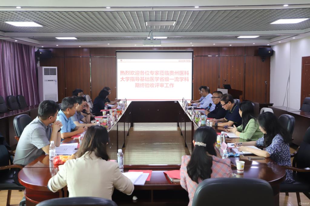近日,基础医学院组织基础医学省级一流学科期终验收评审。校党委委员、副校长曾柱出席,基础医学学科带头人、贵州省常见慢性疾病发病机制及药物研究重点实验室主任郭兵,研究生院和基础医学院班子成员及各二级学科点负责人参加。会议邀请重庆大学生命科学院王贵学教授、大连医科大学基础医学院朱亮教授、南京医科大学基础医学院徐志鹏副教授、上海交通大学基础医学院王昊教授、云南大学生命科学学院张建教授、中国科学院分子植物科学卓越创新中心詹帅研究员和苏州大学医学院张勇教授担任评审专家。