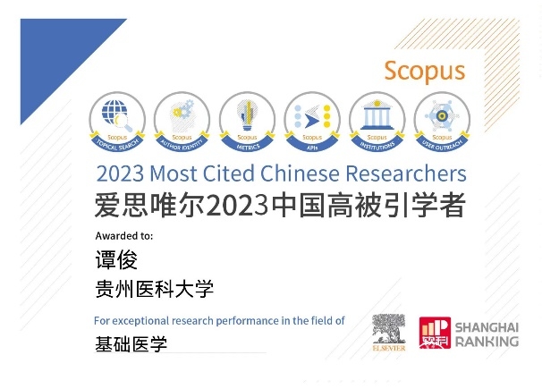3月27日,爱思唯尔 (Elsevier) 重磅发布2023“中国高被引学者” (Highly Cited Chinese Researchers) 榜单。地方病及少数民族疾病教育部重点实验室/贵州省分子生物学重点实验室谭俊教授连续三年入选基础医学领域 “中国高被引学者”榜单。爱思唯尔发布“中国高被引学者”榜单, 不仅致力于系统性地展示中国科研领域的人才分布现状,而且精准呈现各机构、高校优势学科构成及学术影响力,以及在关键技术研究和各重点领域的顶尖人才。