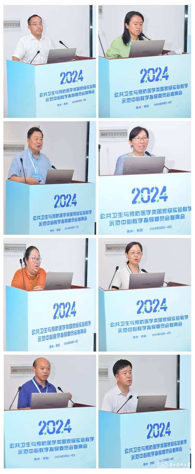 安徽医科大学公共卫生学院执行院长王华、福建医科大学公共卫生学院副院长何斐、天津医科大学公共卫生学院原院长汤乃军、哈尔滨医科大学公共卫生学院副院长王帆、南方医科大学公共卫生学院实验教学中心副主任覃旻、南京医科大学公共卫生学院实验中心主任高蓉、华中科技大学公共卫生学院预防医学实验中心主任姚平、太阳成公共卫生与健康学院院长洪峰汇报本校公共卫生与预防医学类国家级实验教学示范中心建设情况。