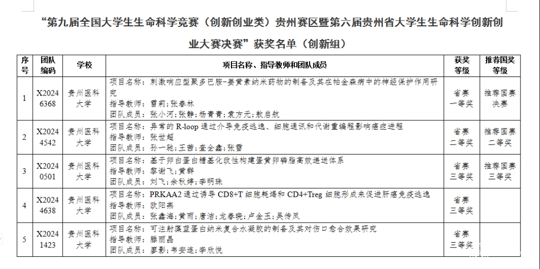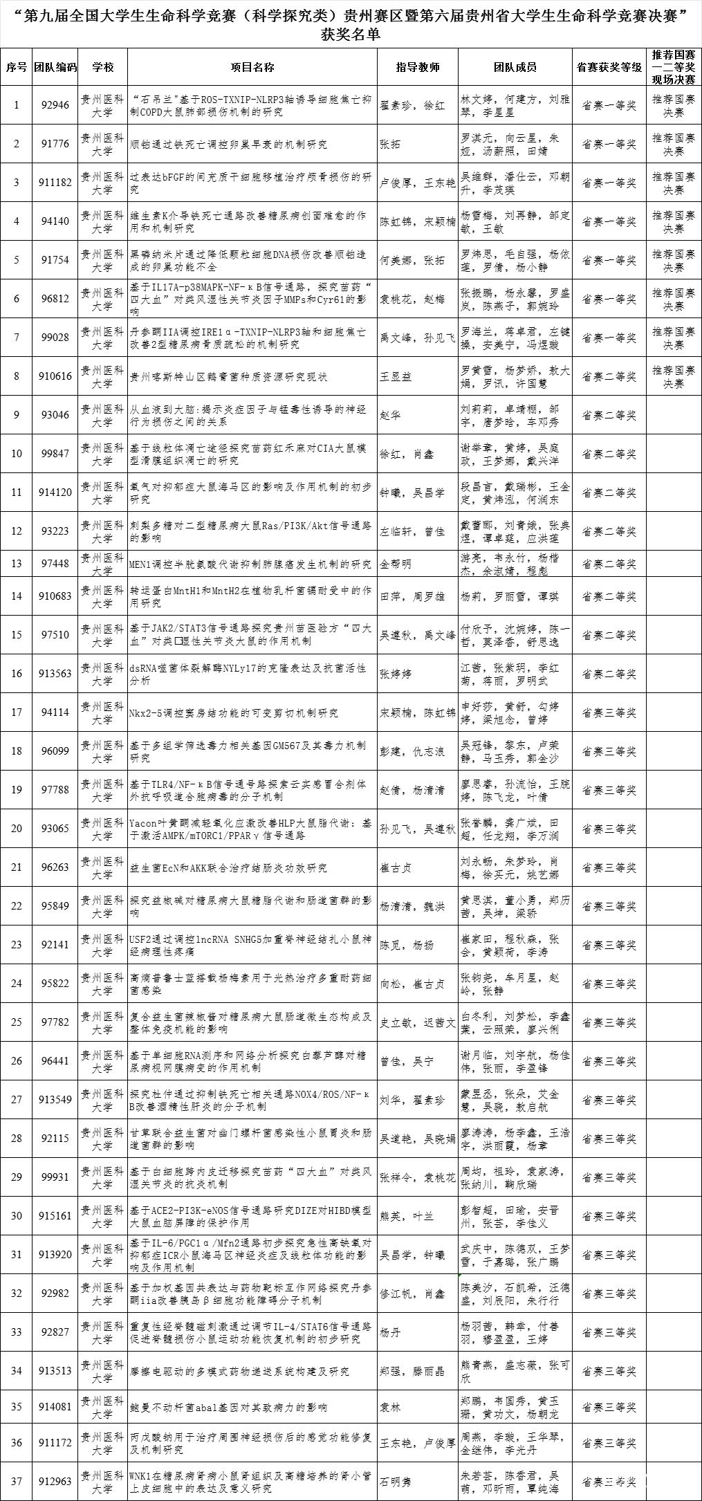本次比赛由贵州省大学生生命科学竞赛指导委员会主办,贵州大学承办,贵州大学农学院、生命科学学院协办,创新创业类吸引了全省15所高校131支队伍报名参赛,科学探究类吸引了全省18所高校491余支队伍报名参赛。经过网络评审、参赛项目选手现场汇报及答辩、专家评审等环节,太阳成学生通过激烈角逐,获得优异成绩,同时创新组的张小河团队、科学探究类的林文婷团队、罗淇元团队等八支团队将全力以赴,向国赛一等奖发起冲击。