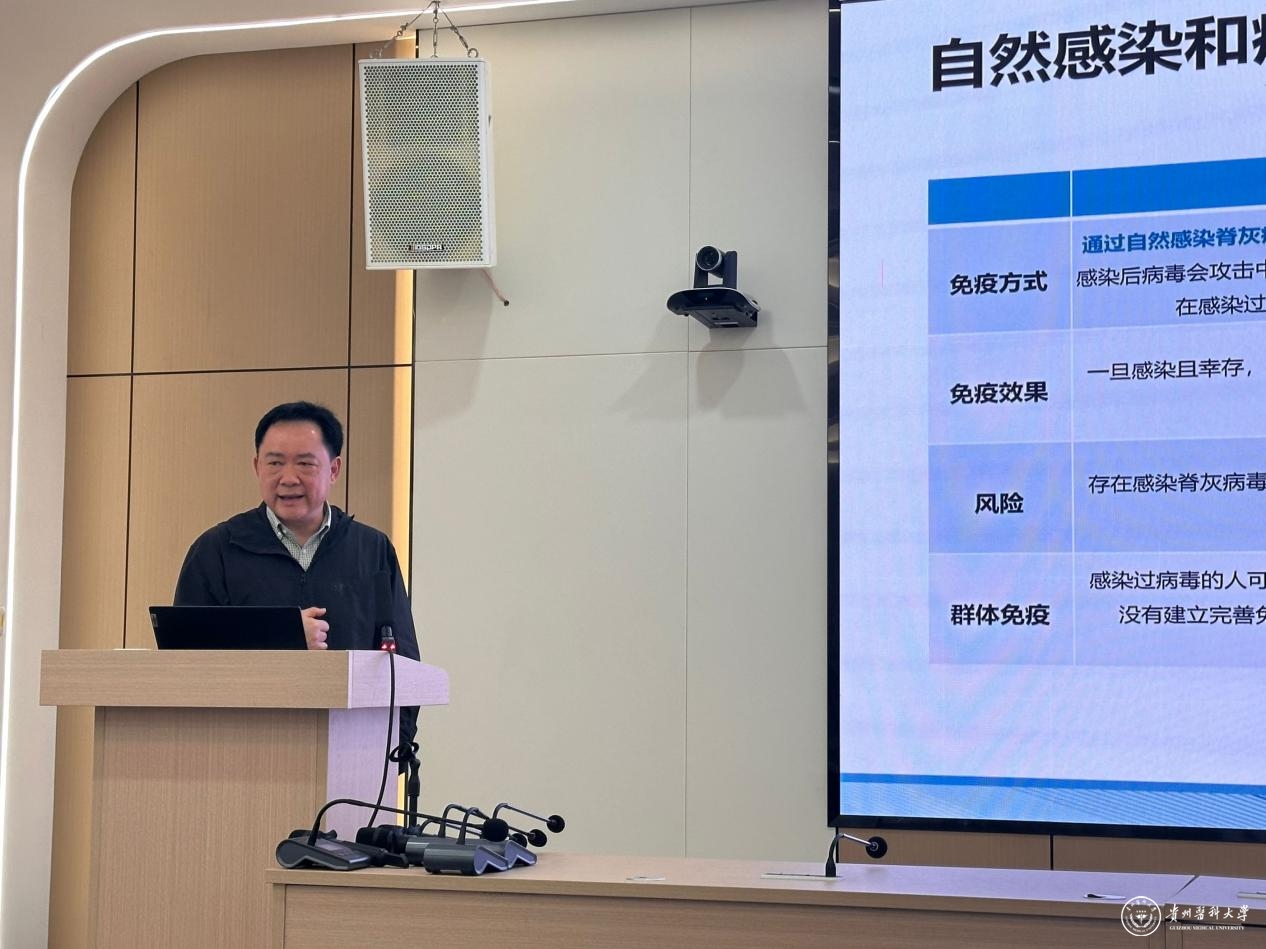 杨净思做了《脊灰病毒学、免疫学及脊灰疫苗的研发史》的专题讲座,围绕脊灰疫苗的发展历史,中国实现无脊灰状态的历程,以及未来消灭脊髓灰质炎行动面临的挑战与展望,为同学们进行了详细介绍,并激励同学们要铭记老一辈科学家的精神,努力学习专业知识,不断提升自己的医学素养和实践能力,作为新时代的医学生,应肩负起历史赋予的使命,为人类的健康事业贡献自己的青春和力量。