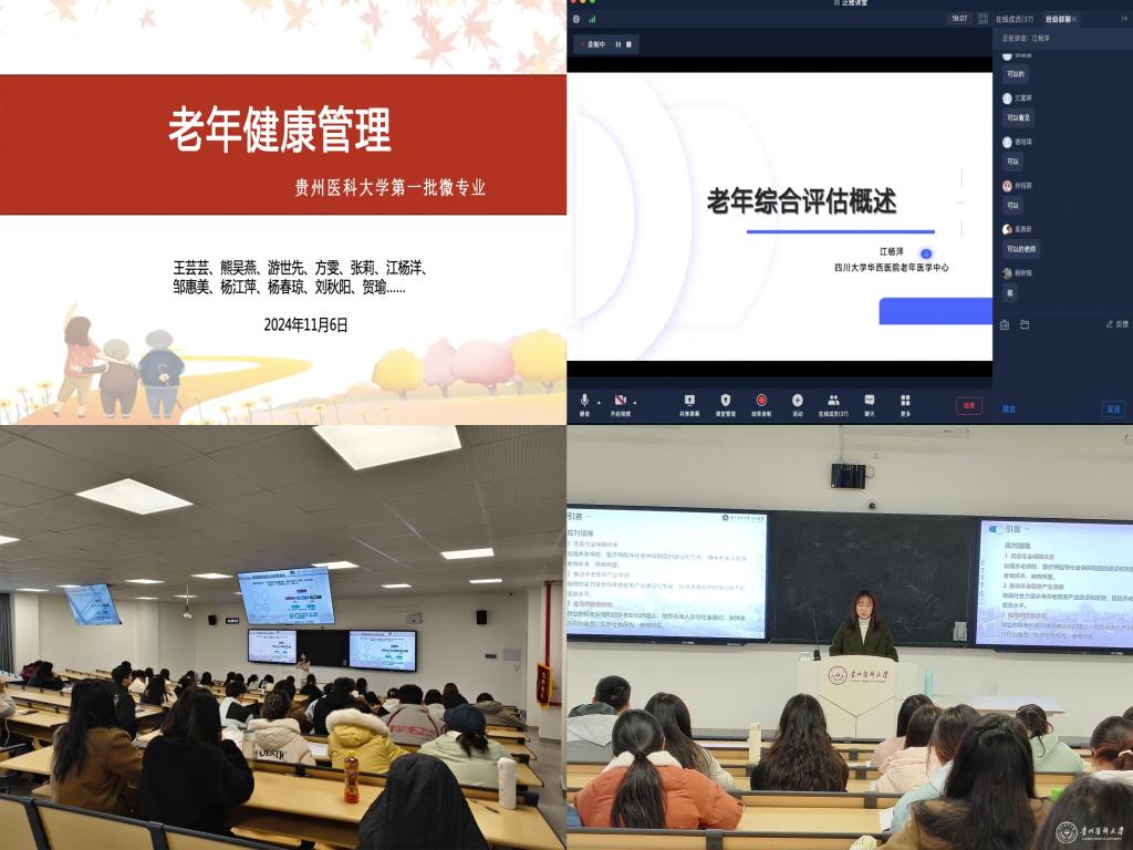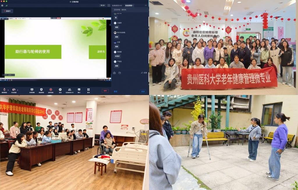 11月6日,老年健康管理微专业正式开课,课程内容涵盖了《老年辅具使用》《养老院的经验与管理》《老年综合评估》等实用科目,授课团队主要由护理学院专职教师、南明区晚霞彩带老年人日间照料中心的资深团队成员、附属医院老年医学科医护人员以及四川大学华西医院老年医学中心护士组成。