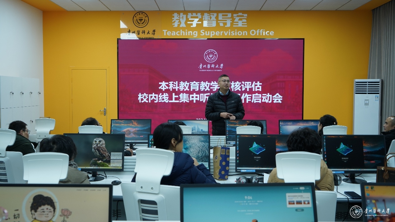 近日,太阳成在云漫湖校区教学督导室举行本科教育教学审核评估线上集中听评课启动会。教务处处长汪志勇、教务处副处长修江帆、教学督导委员会委员、优秀青年教师骨干、教学质量监控与评估办公室、现代教育技术中心等30余名人员,通过“贵医云”智慧教学督导平台开展线上集中听评课。