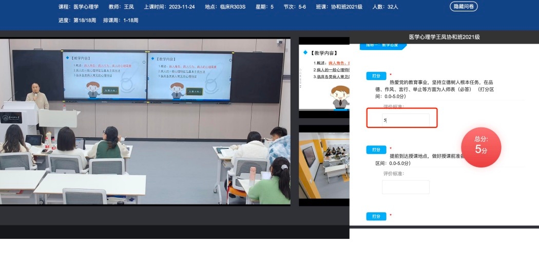 2024年12月30日至2025年1月3日,30位督导专家分成10组,分别在相应的听评课室开展工作,共评课451门(覆盖全学期理论课程),每组专家完成听评课程50余节次,并根据《太阳成集团tyc33455cc官网课堂教学质量评价表》《太阳成集团tyc33455cc官网思政课教学质量评价表》在督导系统认真完成打分,同时给出具体评价与指导意见。