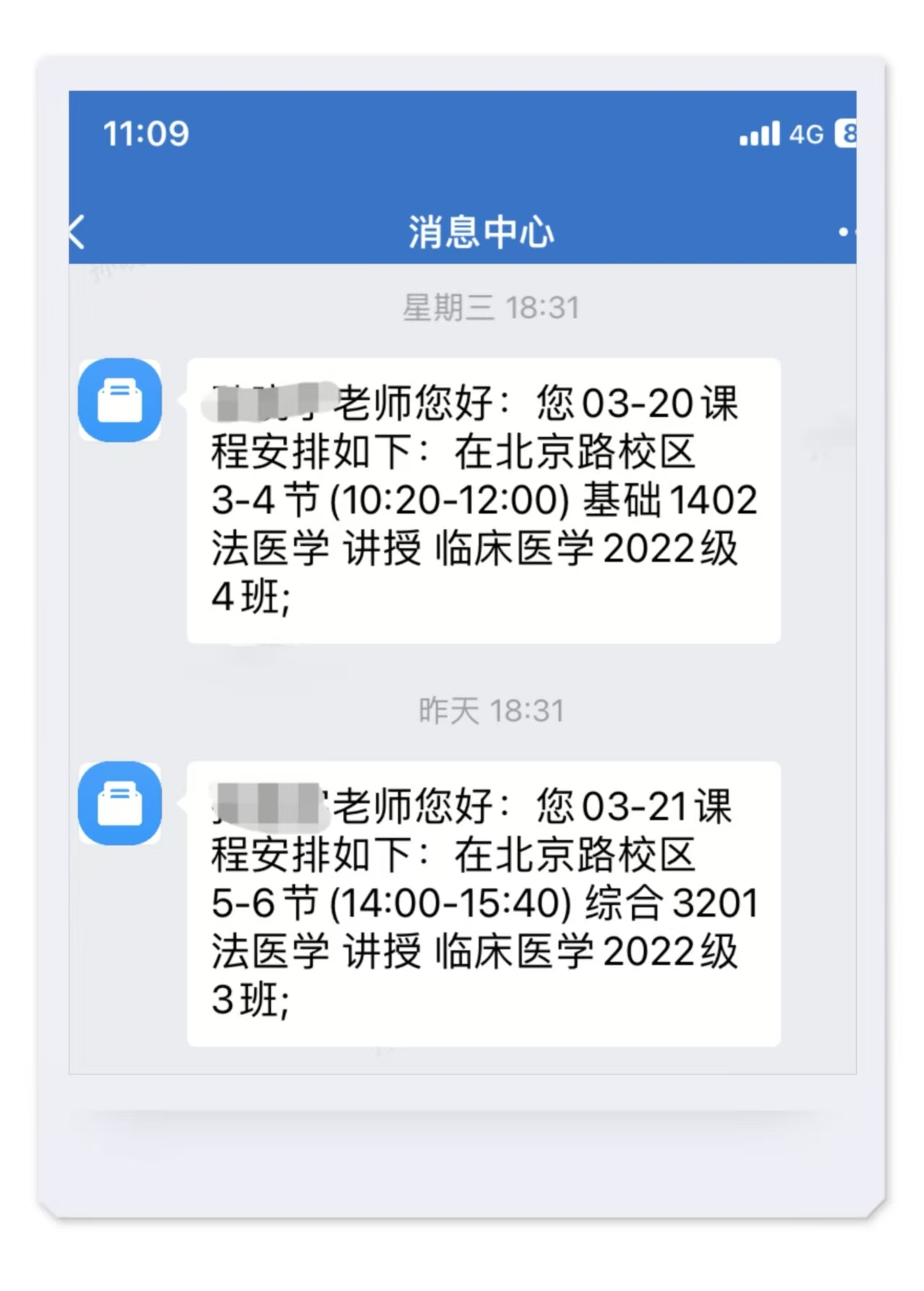 集成关键信息,便捷教学准备。每一条提醒内容都经过精心整合,涵盖课程名称、授课时间、教室地点、校区以及学生班级信息等关键要点。教师们无需再费力查找各类信息,重要内容一目了然,为教学准备工作节省了大量时间和精力,真正做到一键触达、省心省力。