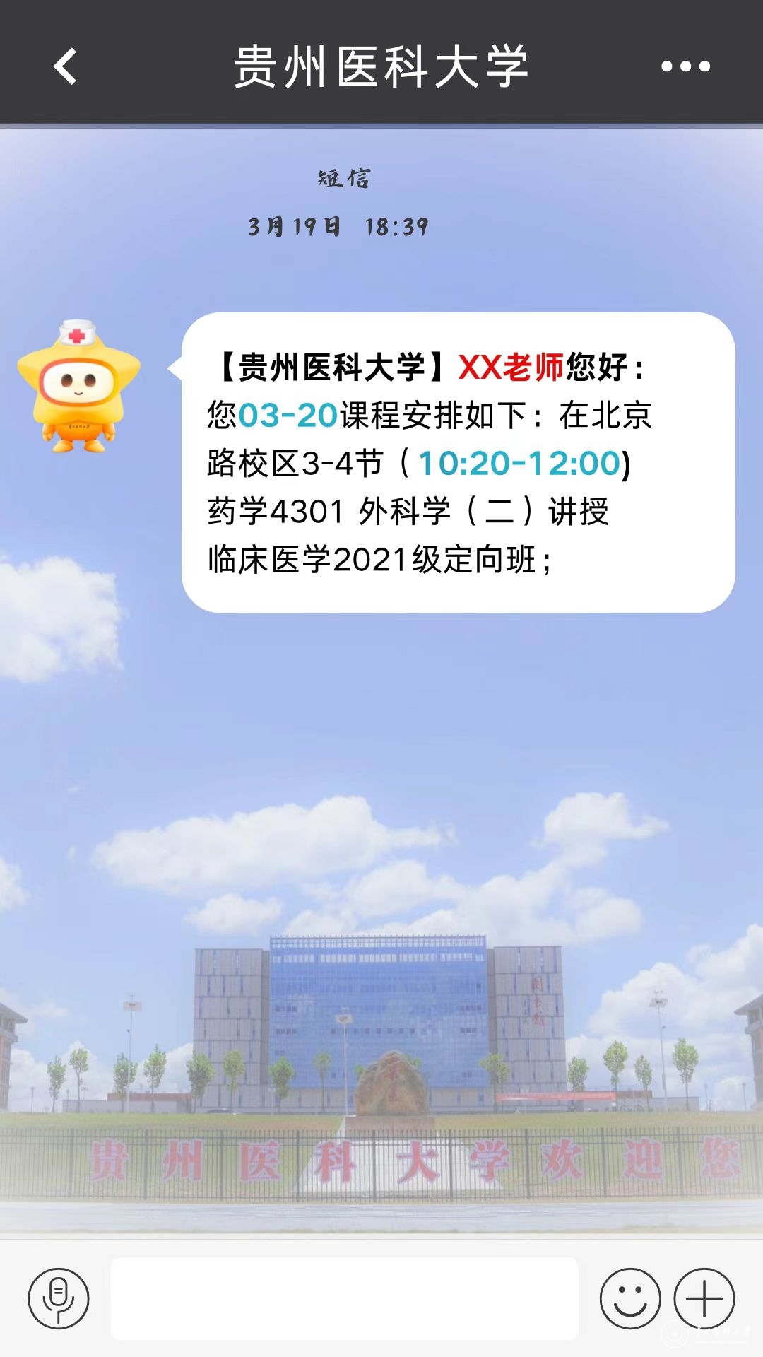 定时精准提醒,方便规划教学行程。教务系统充分发挥智能化优势,自动同步教师课表;在上课前1 天,便会通过企业微信和短信平台双渠道,向教师推送提醒信息。这一贴心设计,能帮助教师们合理规划每日行程,有效避免因事务繁杂而遗忘课程安排,确保教学活动有条不紊地进行。