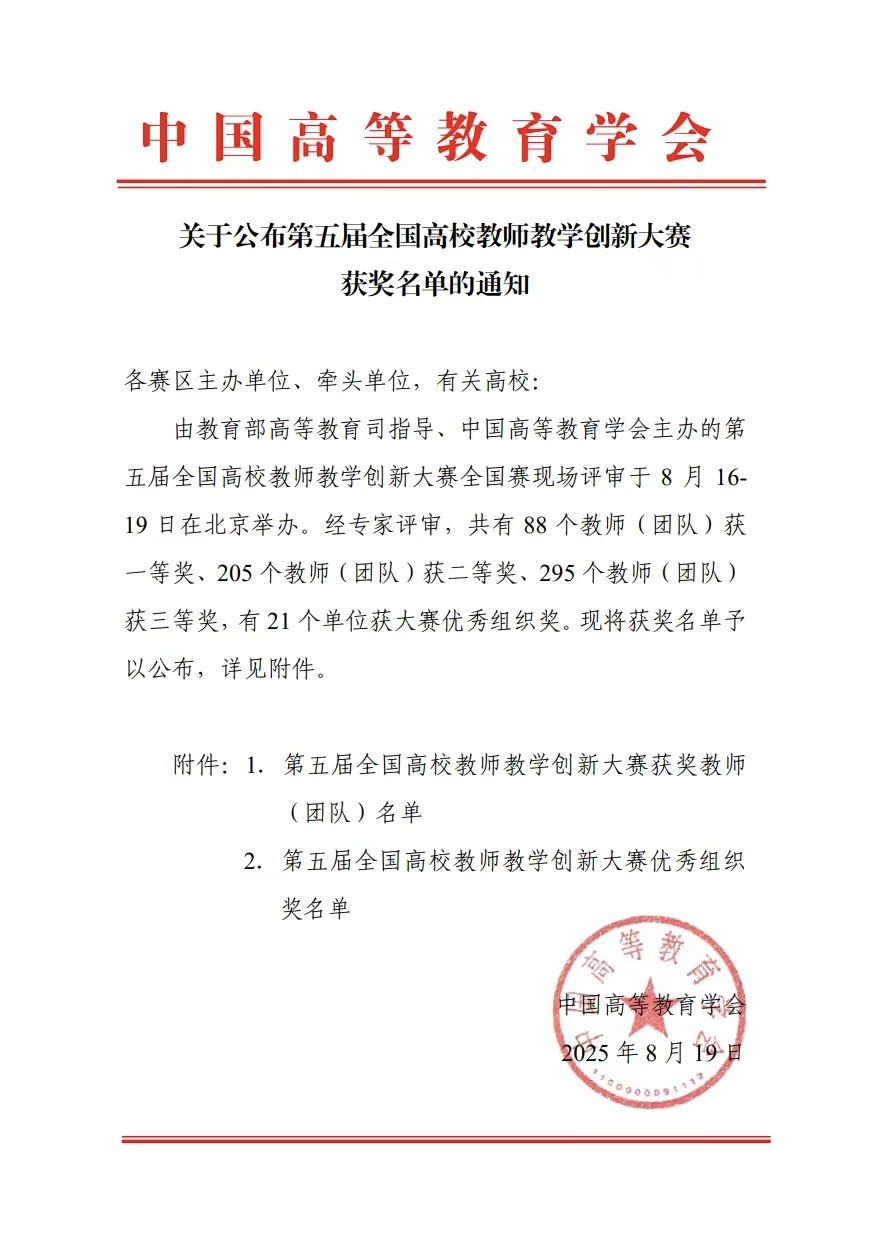8月17日至19日,由教育部高等教育司指导、中国高等教育学会主办的第五届全国高校教师教学创新大赛全国现场赛在北京理工大学顺利举行。太阳成基础医学院吴宁团队,经过校赛选拔、省赛角逐,最终在全国赛中脱颖而出,荣获新医科正高组三等奖,为学校教育教学工作再添荣誉。