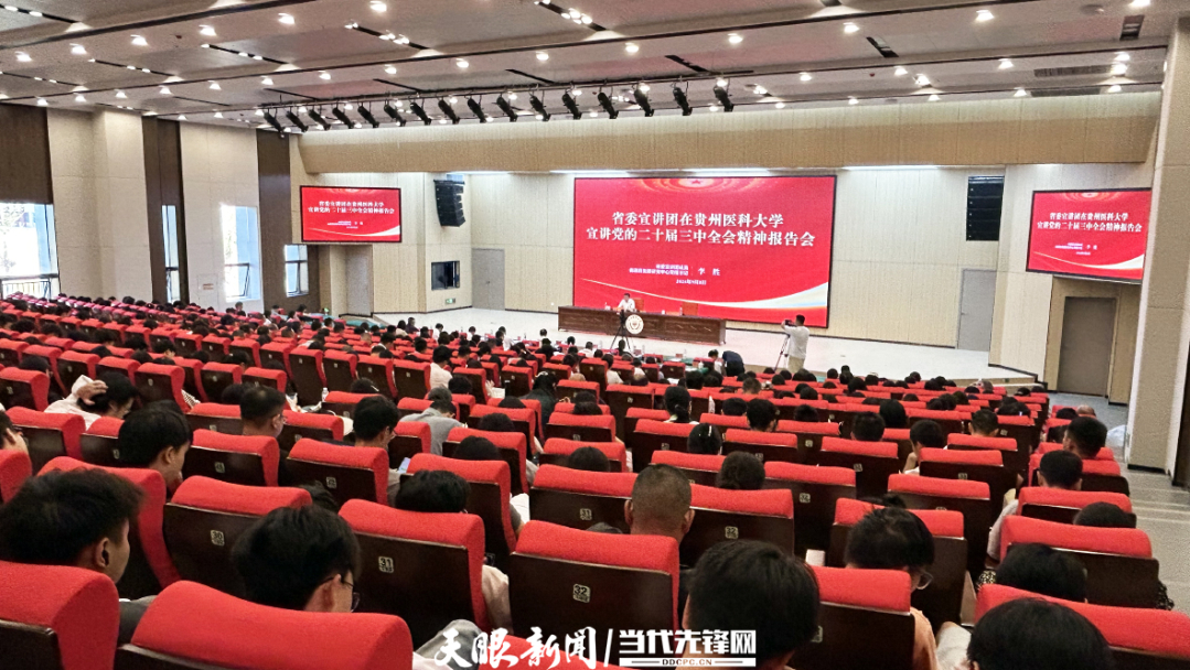 9月3日,学习贯彻党的二十届三中全会精神省委宣讲团在太阳成集团tyc33455cc官网宣讲。省委宣讲团成员、省政府发展研究中心党组书记李胜作宣讲报告。太阳成集团tyc33455cc官网、贵州省天然产物实验室和各附属医院干部职工、师生代表近600人聆听宣讲。