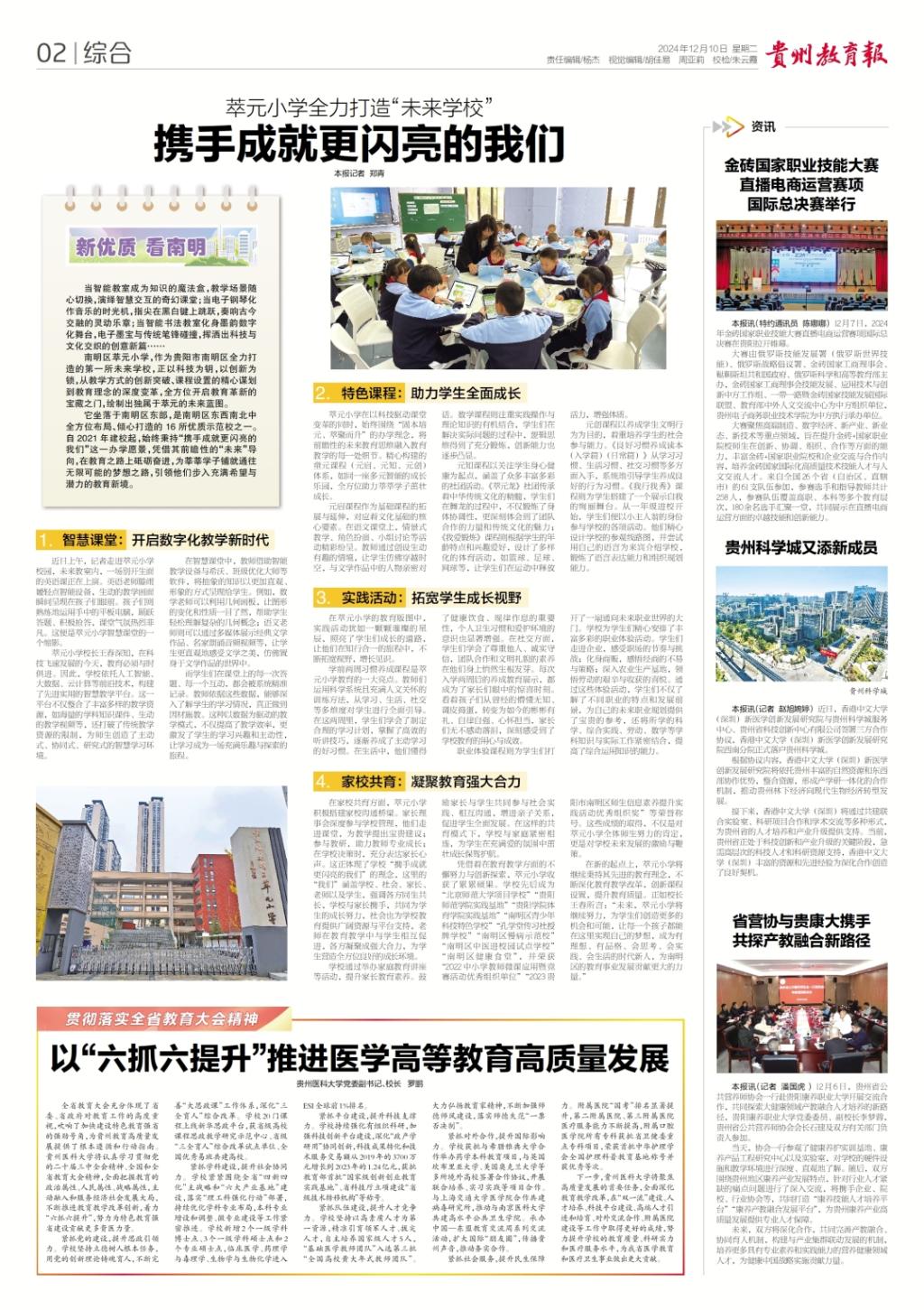 全省教育大会充分体现了省委、省政府对教育工作的高度重视,吹响了加快建设特色教育强省的强劲号角,为贵州教育高质量发展提供了根本遵循和行动指南。太阳成集团tyc33455cc官网将认真学习贯彻党的二十届三中全会精神、全国和全省教育大会精神,全面把握教育的政治属性、人民属性、战略属性,主动融入和服务经济社会发展大局,不断推进教育教学改革创新,着力“六抓六提升”,努力为特色教育强省建设贡献更多贵医力量。